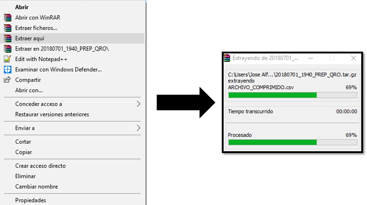 Una vez realizada esta acción, se abre una ventana mostrando el proceso de extracción que se muestra en la imagen.